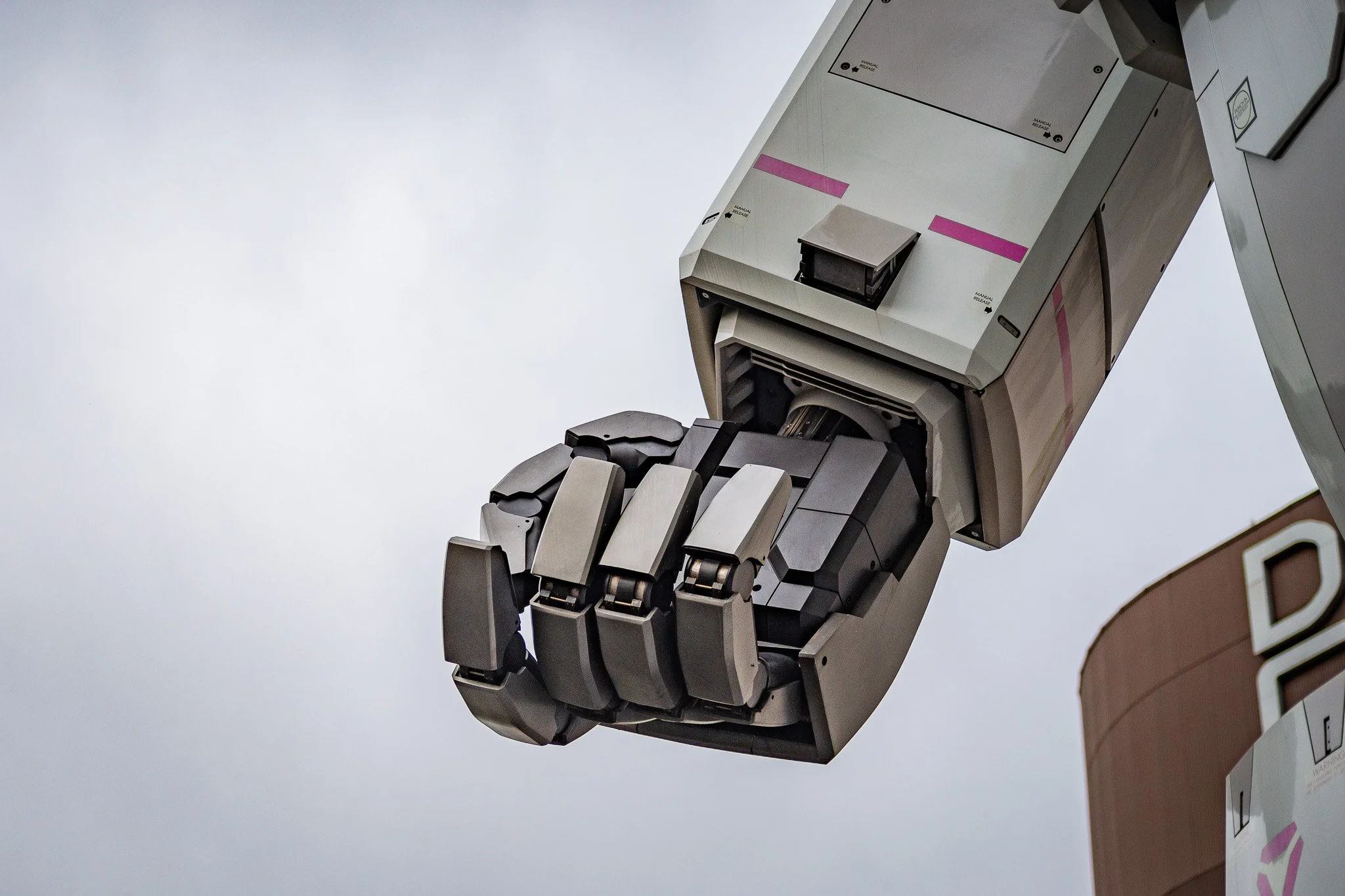 None of my lenses were really built to capture a subject like this. The 14mm was too wide—so wide that it distorted the statue in ways that weren’t flattering. The 50mm gave me a better perspective, but I had to stand far back just to frame the full height—and even then, the angles felt a little off. Ironically, the 90mm macro lens worked best because I could pick out details: the head, the chest plate, a hand posed against the sky.